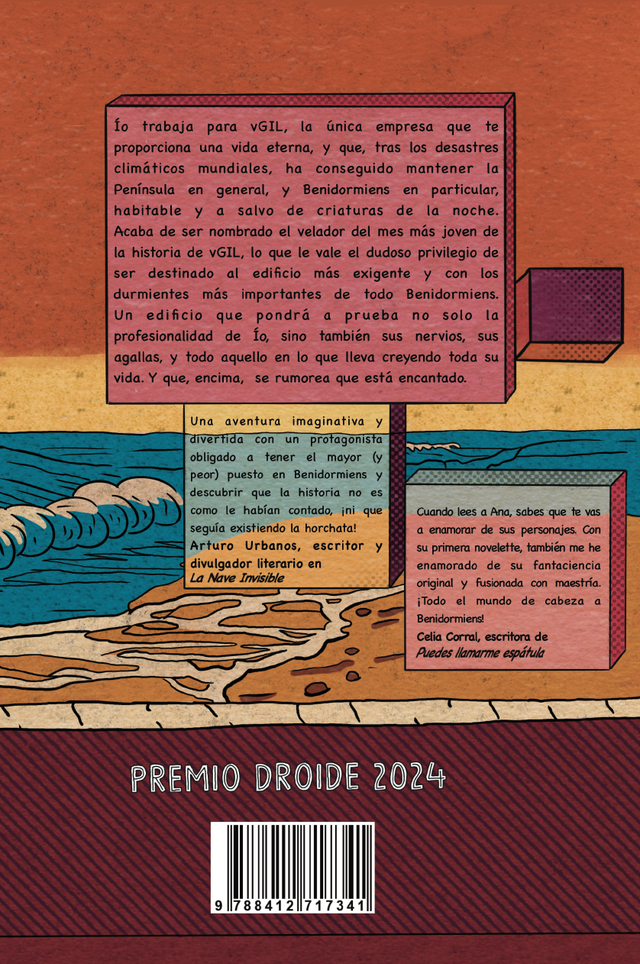 Ío trabaja para vGIL, la única empresa que te proporciona una vida eterna, y que, tras los desastres climáticos mundiales, ha conseguido mantener la Península en general, y Benidormiens en particular, habitable y a salvo de criaturas de la noche. Acaba de ser nombrado el velador del mes más joven de la historia de vGIL, lo que le vale el dudoso privilegio de ser destinado al edificio más exigente y con los durmientes más importantes de todo Benidormiens. Un edificio que pondrá a prueba no solo la profesionalidad de Ío, sino también sus nervios, sus agallas, y todo aquello en lo que lleva creyendo toda su vida. Y que, encima, se rumorea que está encantado.